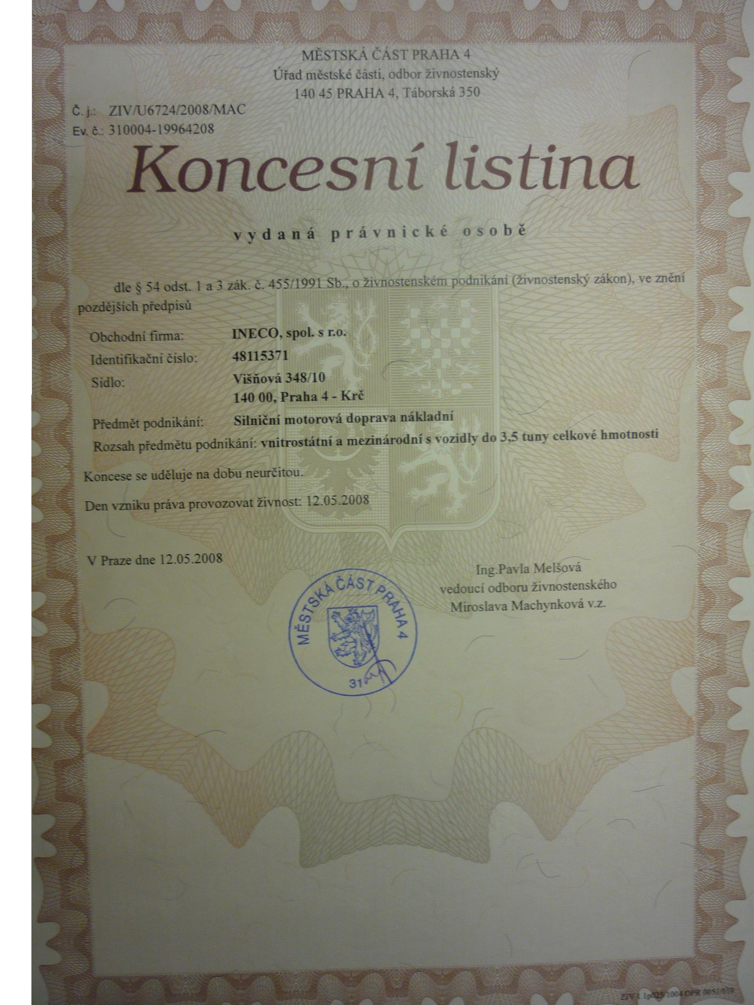 koncesní listina - autodoprava